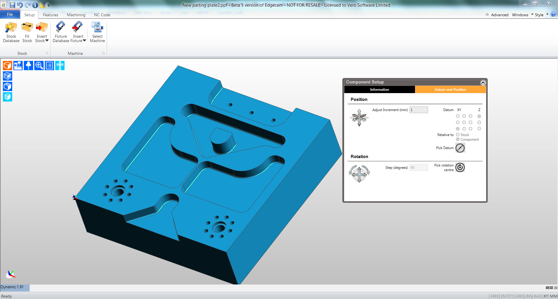 - Příprava: interaktivní prostředí dynamicky definuje nulový bod, vkládá polotovar a upínače a zvolí vhodný CNC stroj.