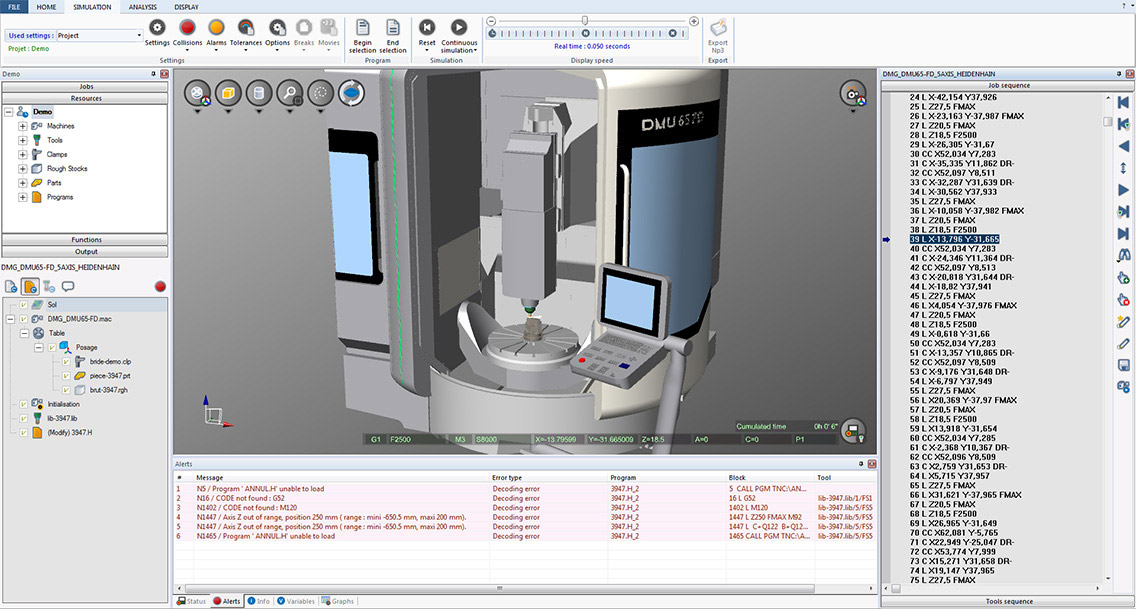• Kompletní simulace «stroj-obráběný díl» s detekcí všech typů kolizí v jediném procesu