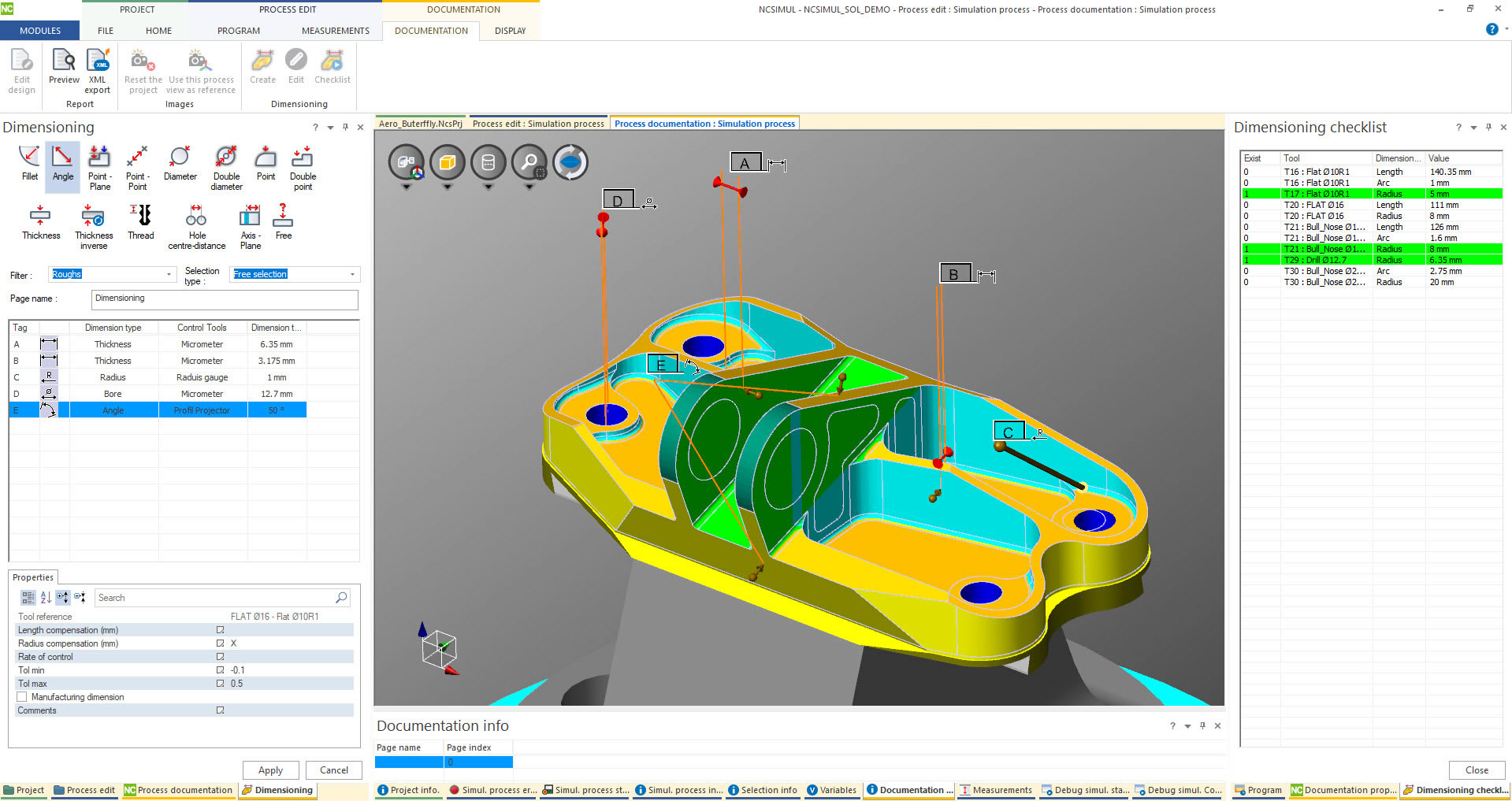 Integrated to NCDoc, dimensioning is a new function which creates control instructions for operators during the CNC process. “It defines a dimension check-list with user-defined tolerances; automatically defines the minimum measurement needed for each cut; generates a comprehensive view for the programmer and operator on the 3D simulation; and works with the NCDoc documentation template.” This saves time and money, particularly when using the Wizard to create the correct number of measurements, even when using a probe tool on the machine.