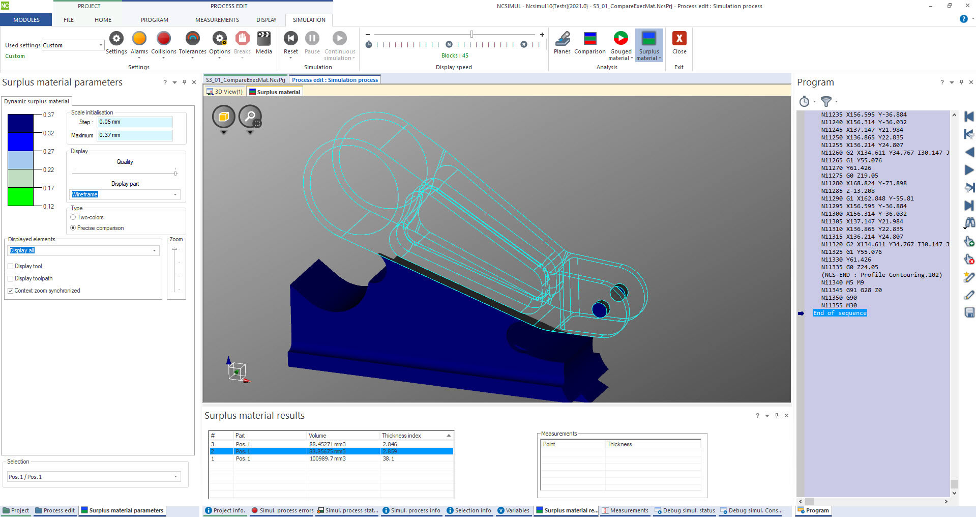 The 2021 release features a new comparison mode which detects excessive material, during a fast and hidden simulation. It shows a solid comparison between the CAD/CAM models or previous cut stock and the NCSIMUL simulated model.