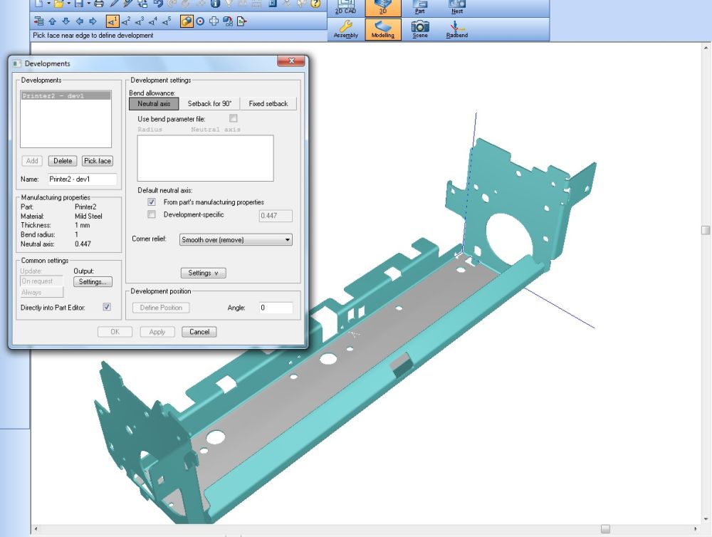 This is aided by strengthened 3D translation procedures, which he says import information more consistently. The routines for automatically calculating the thickness of imported parts have also been redesigned giving faster and more accurate results. Automatic face selection now applies to unfolding, and there is a simple way to manually specify the top face much earlier in the process. “Telling Radbend at the 3D stage which is the protected face ensures the visible face of the part is scratch-free.”