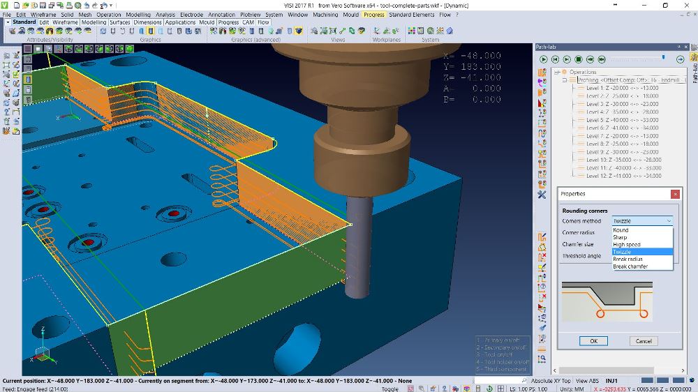 And for VISI’s CAM users, an update to geometry management means individual pieces are no longer limited by a specific project. It gives greater freedom in picking the piece, obstacle or stock, allowing any combination. This is also used for picking faces and face lists, all managed in a much more user-friendly interface, and driven inside the operation itself. Everything is now linked to the operation, not the project, and all geometry is managed interactively, picking the specific pieces or faces that we want to machine.