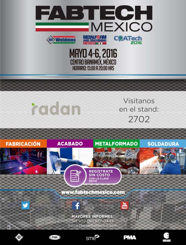 RADAN, a cutting-edge solution for the design and manufacturing of sheet-metal products, will be exhibited May 4-6 at FABTECH Mexico 2016, hosted at Centro Banamex in Mexico City, Mexico.
